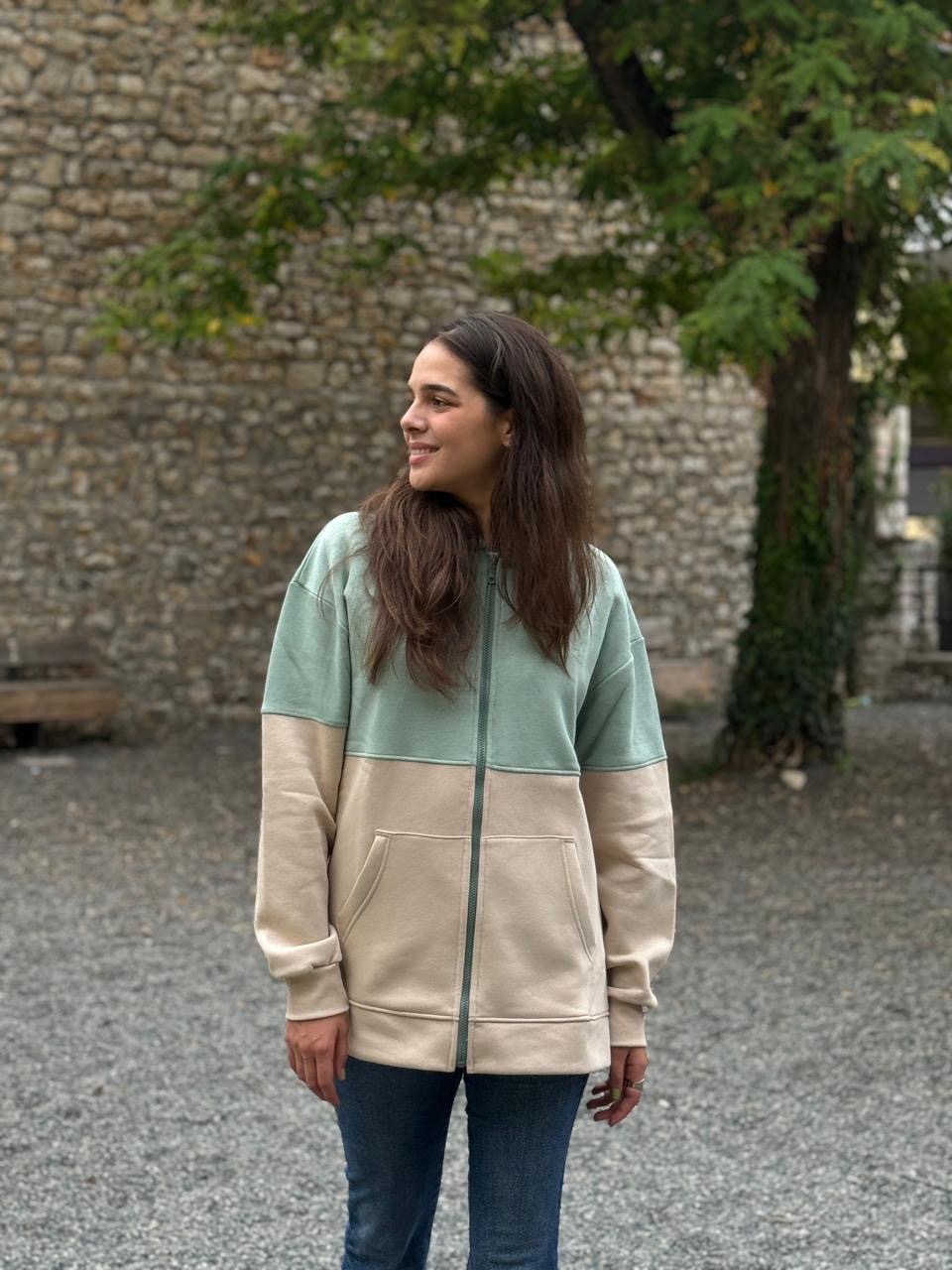Hooded Jacket Mint Green x Beige